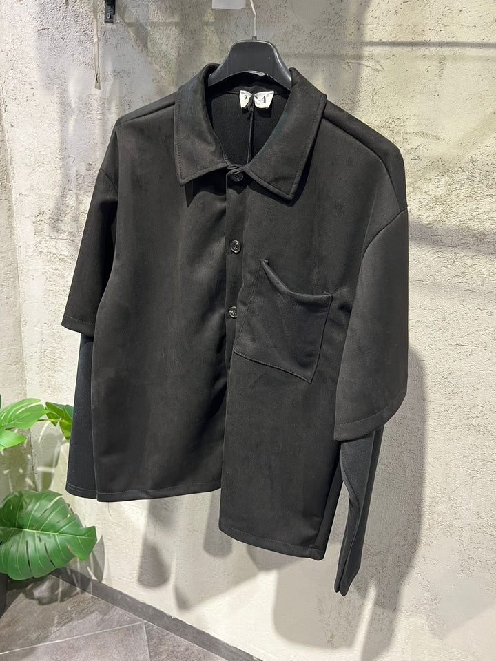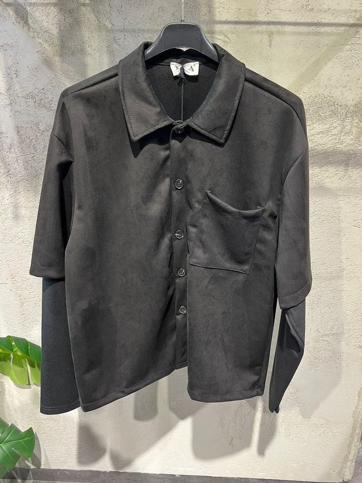 CAMICIA DUOBLE LONG SLEEVE CAMOSCO , TESSUTO CAMICIA MANICA COTONE , VESTIBILITA' CROPPED