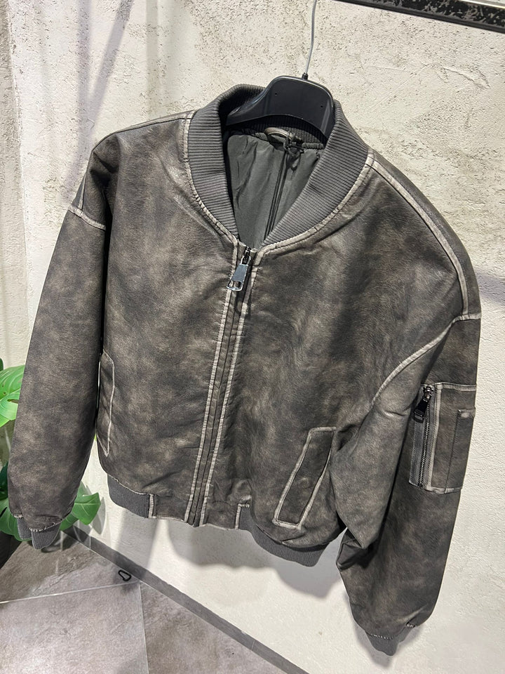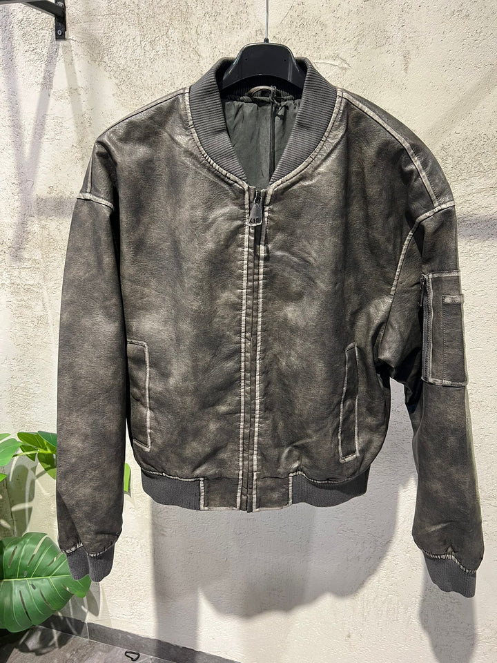 GIUBBINO CROPPED WASH SABBIATO GRIGIO , VESTIBILITA' CROPPED , TESSUTO ECOPELLE