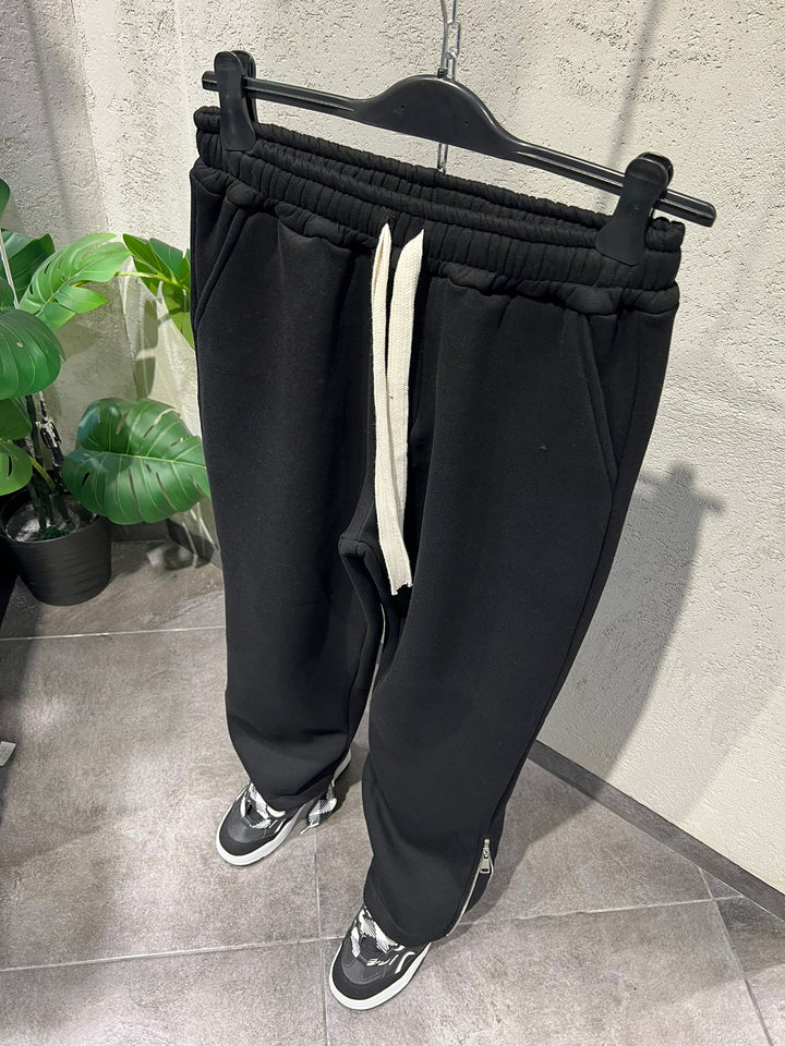 PANTALONE TUTA ZIP FONDO AMPIO , TESSUTO FELPA FELPATO , VESTIBILITA' REGOLARE