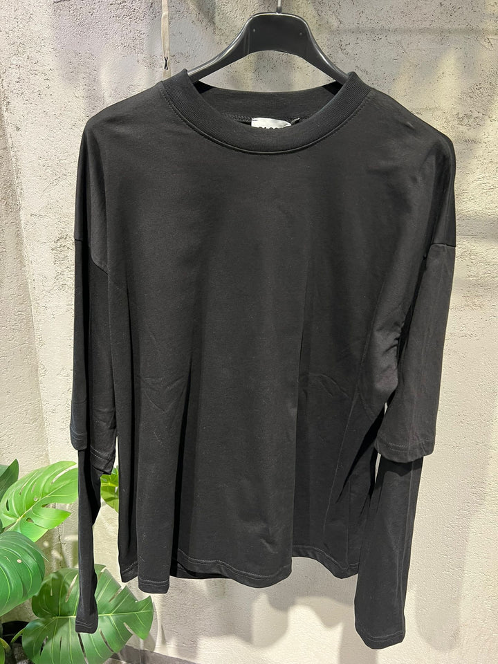 T-SHIRT BASIC MOD ZARA LONG SLEEVE , TESSUTO COTONE DOPPIO , VESTIBILITA' CROPPED