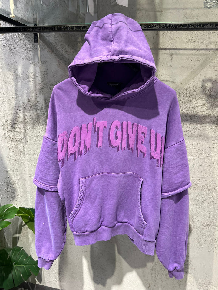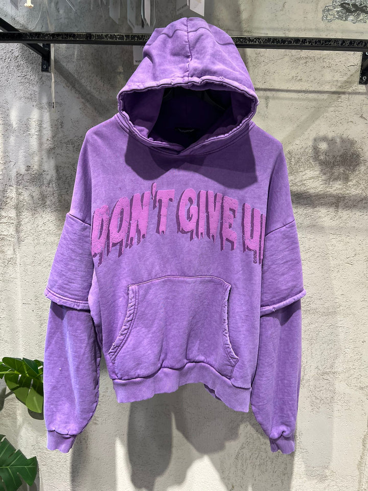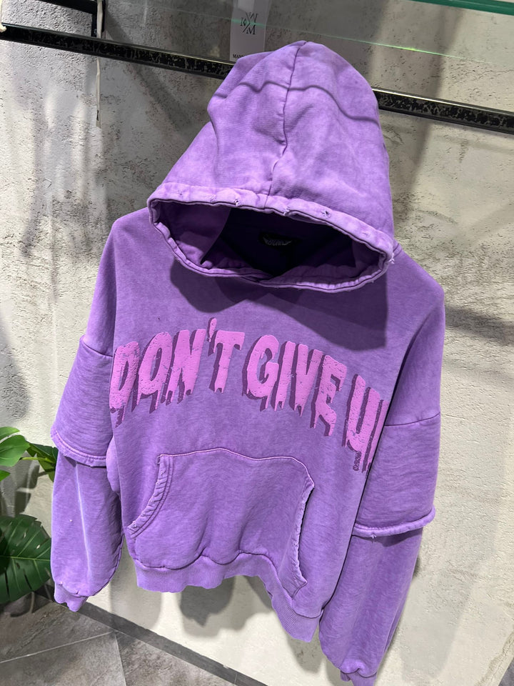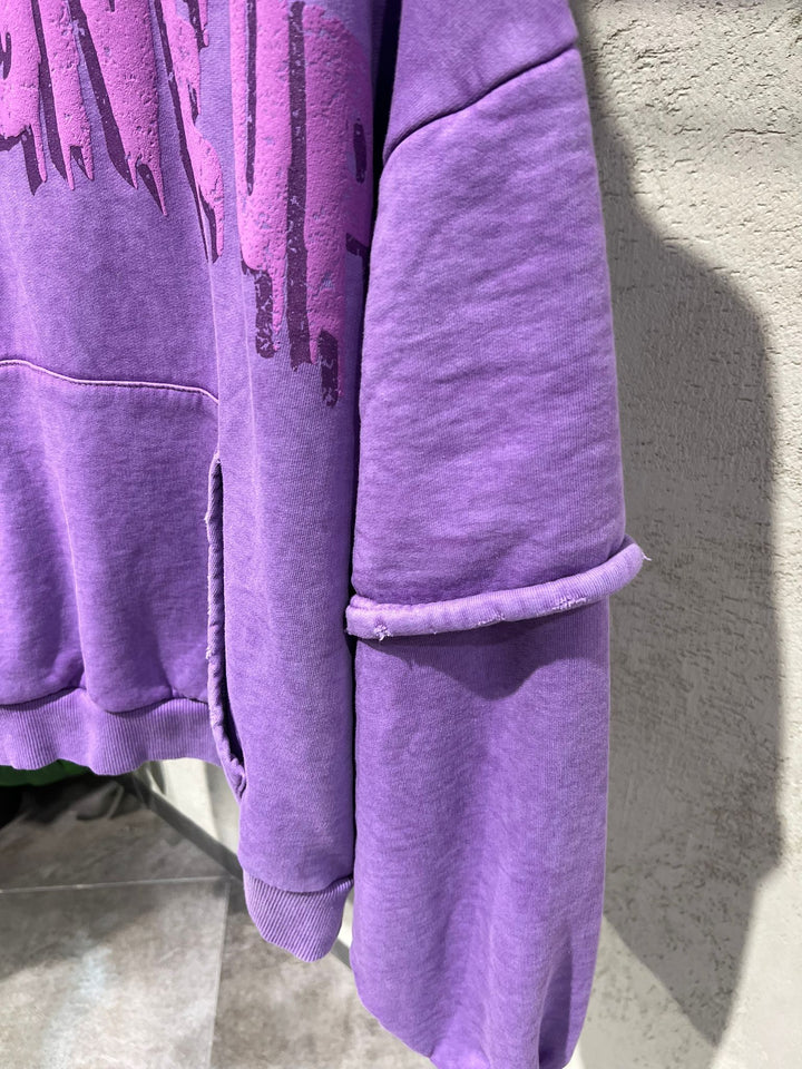 FELPA DOUBLE MANICA SLEEVE MARMORIZZATA DESTROYED , TESSUTO FELPA FELPATO , VESTIBILITA' CROPPED OVERSIZE