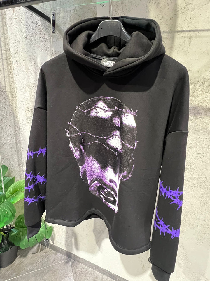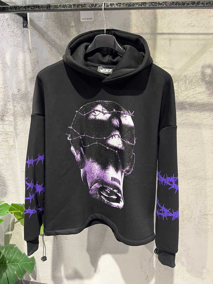 FELPA CAPPUCCIO STAMPA FILO SPINATO BNK , TESSUTO FELPA FELPATA , VESTIBILITA' UN CROPPED