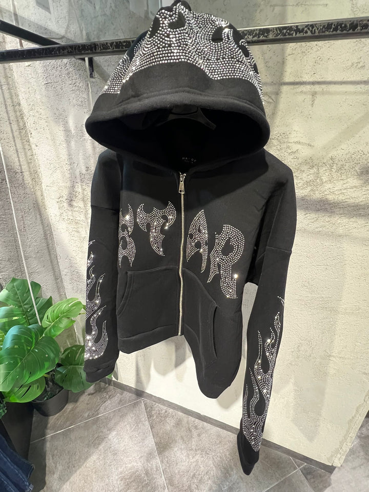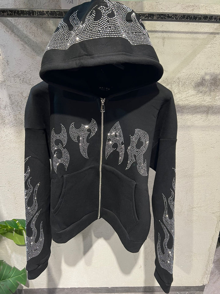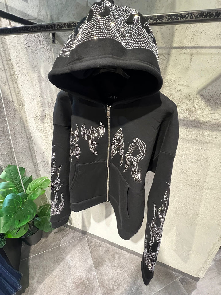 START CON ZIP CON DIOMAND STRASS , TESSUTO FELPATO , VESTIBILITA' REGOLARE
