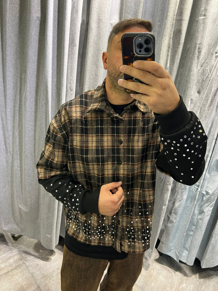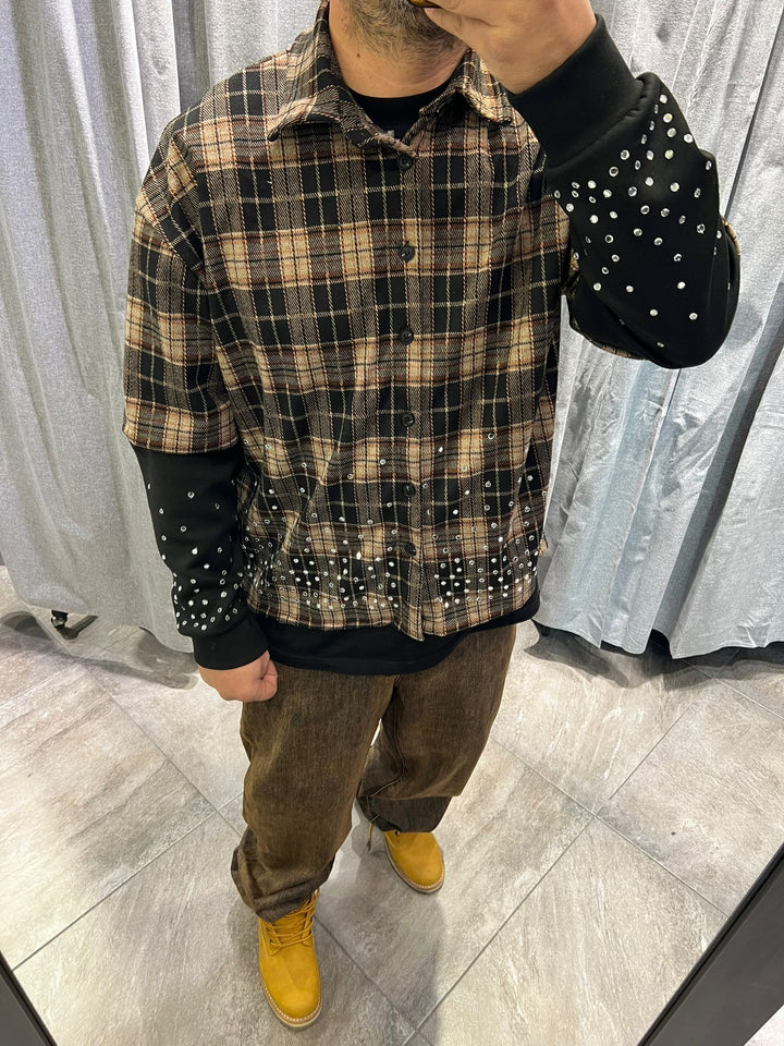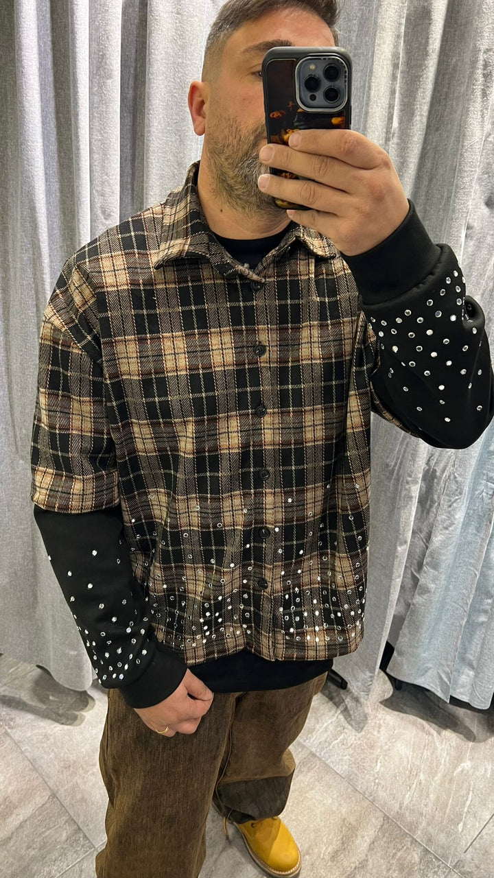 CAMICIA DOUBLE DIAMOD GLASS STRASS , TESSUTO FLANELLA , VESTBILITA' REGOLARE CROPPED