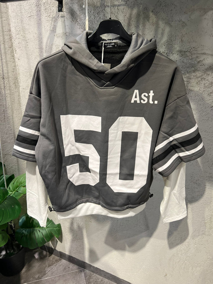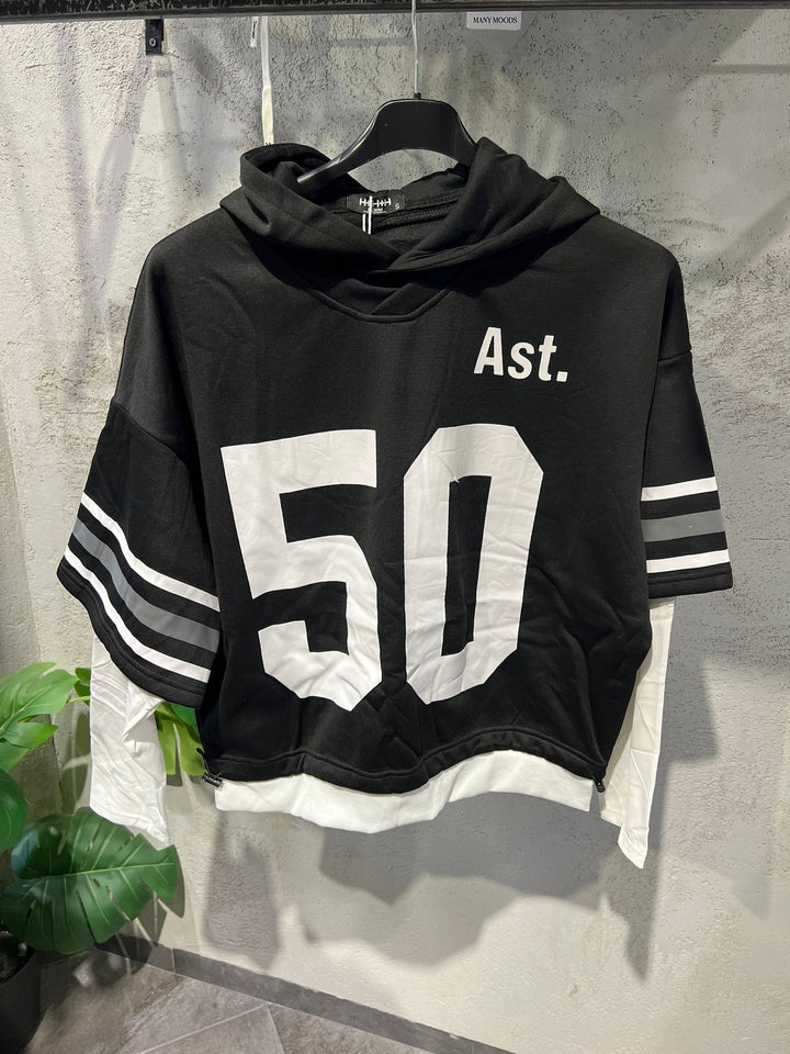 FELPA FELPATO CON MANICA DOPPIATO CON CAPPUCCIO , TESSUTO FELPA FELPATO VESTIBILITA' OVERSIZE CROPPED
