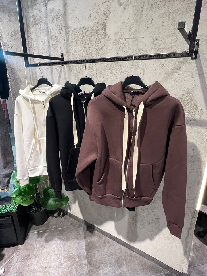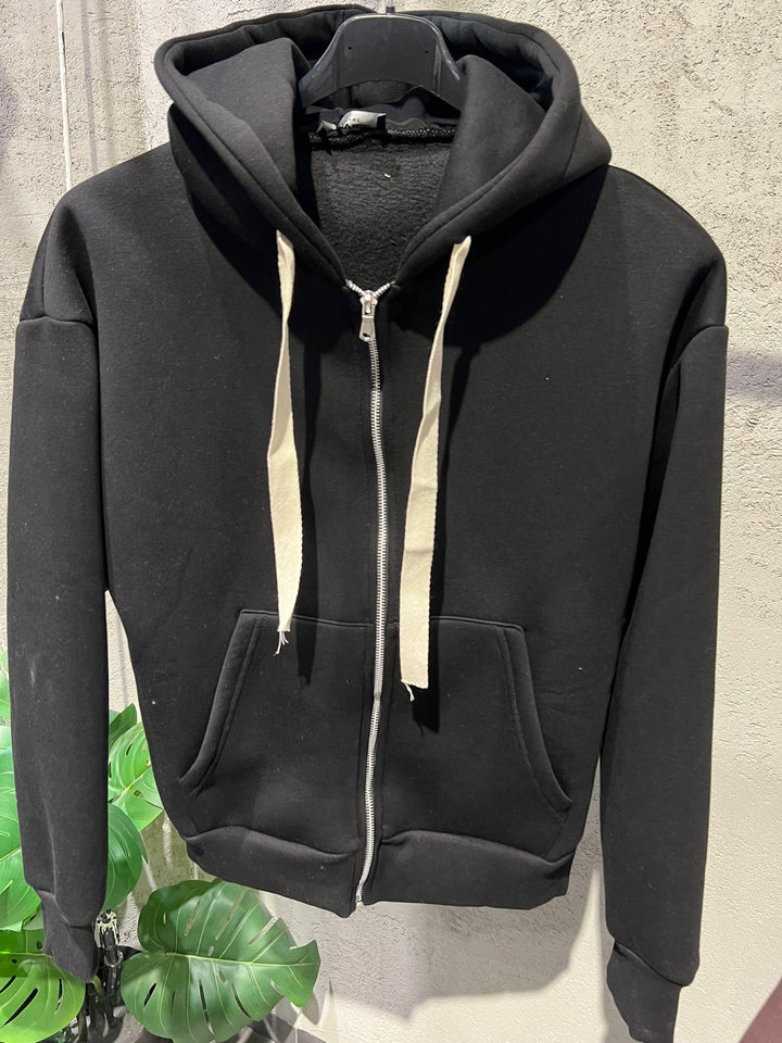 FRELPA CROPPED CON ZIP CAPPUCCIO , TESSUTO FELPA FELPATO , VESTIBIITA' UN PO CROPPED ,