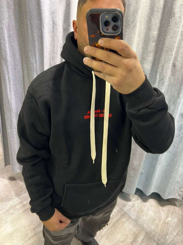FELPA CON CAPPUCCIO , CON STAMPA DAVANTI E RETRO , TESSUTO FELPA FELPATA , VESTIBILITA' REGOLARE