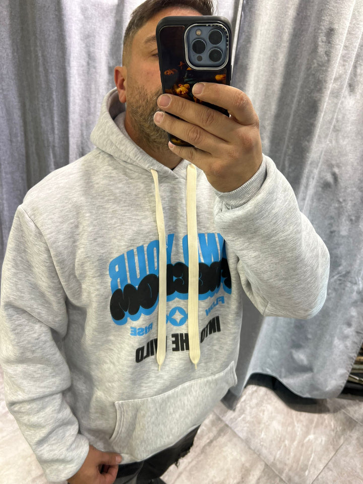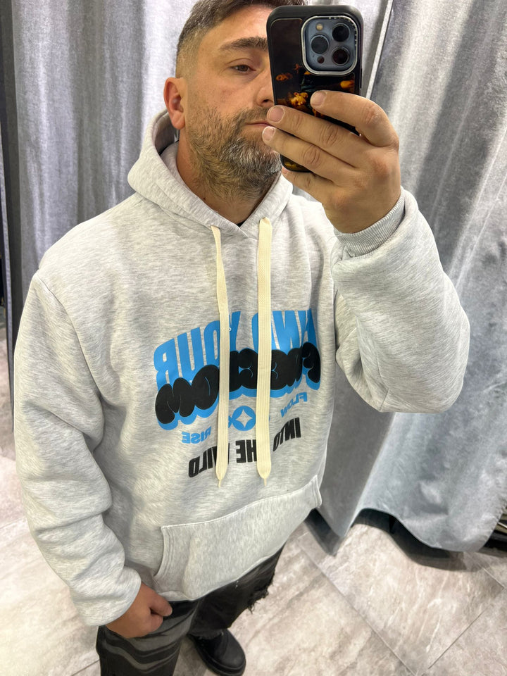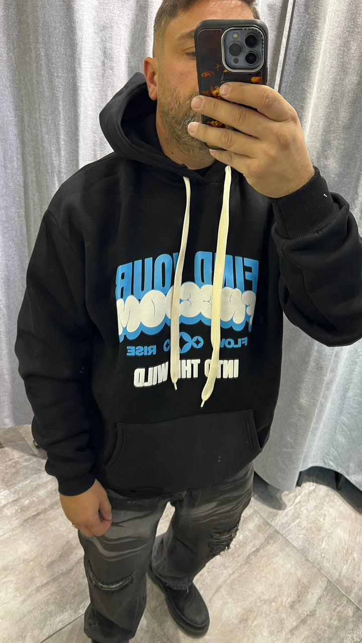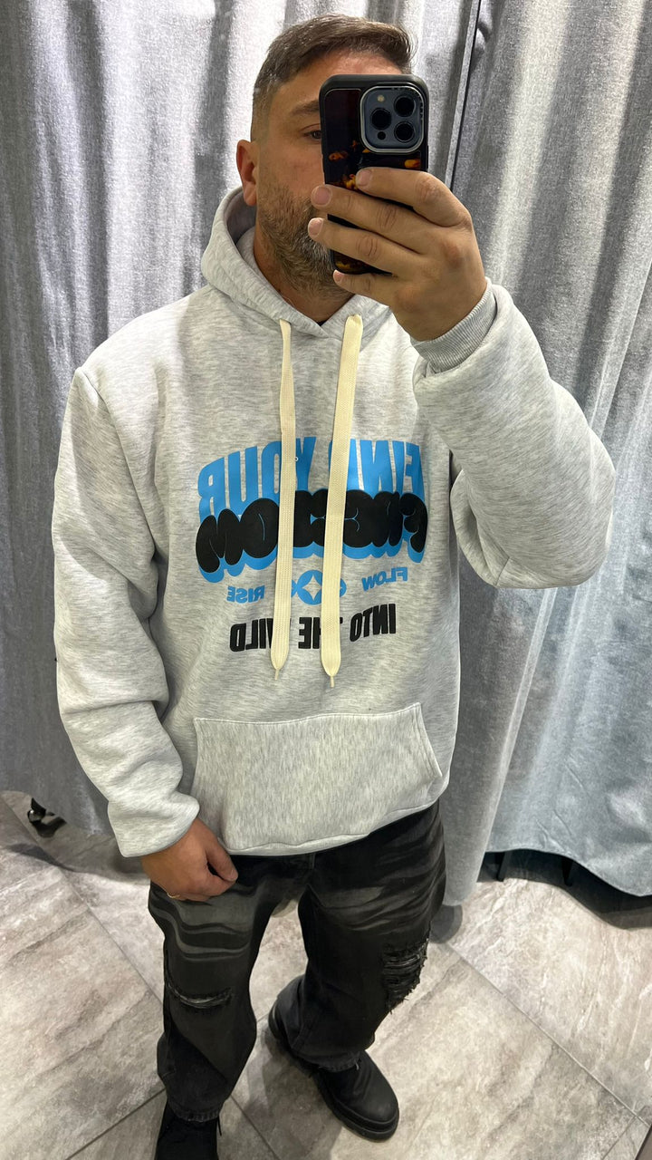 FELPA CON CAPPUCCIO CON STAMPA , VESTIBILITA' REGOLAREB , TESSUTO FELPA FELPATA
