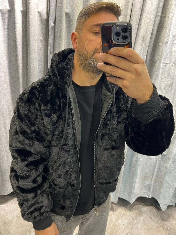 GIUBBINO MOD ZARA SKIN REVERSIBILE ZIP , TESSUTO ECOPELLE PELLICCIA , VESTIBILITA' OVESRIZE CROPPED ,