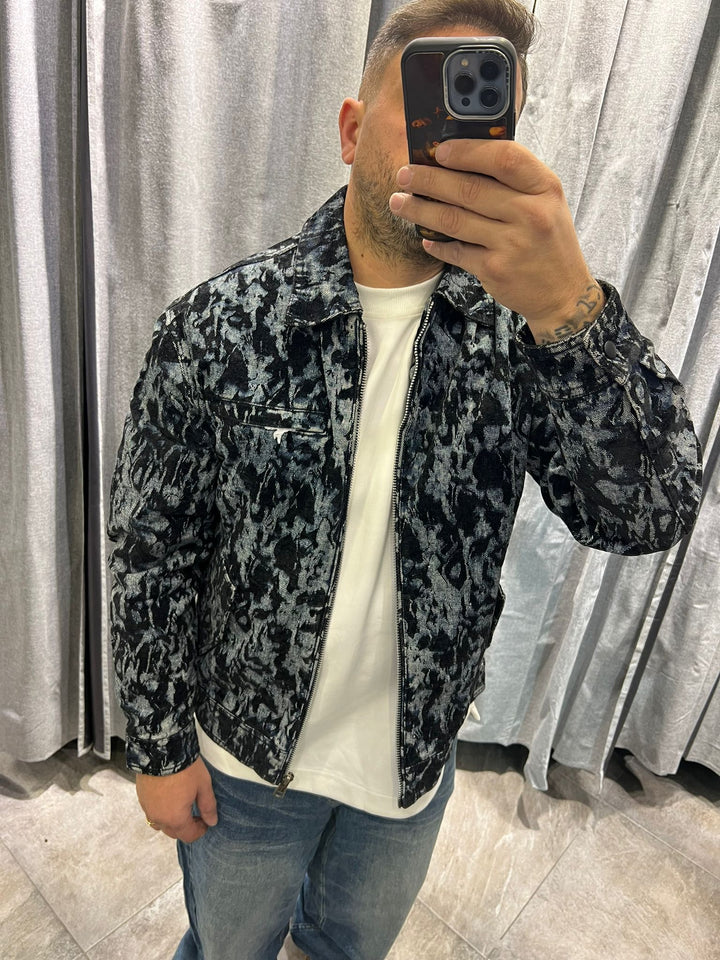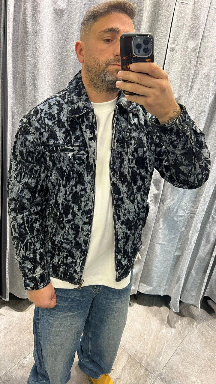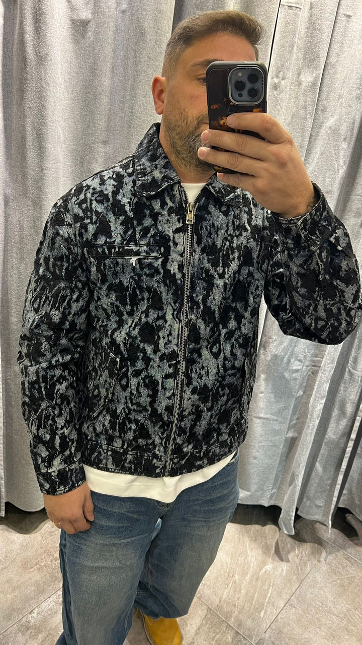 GIUBBINO JEANS DOPPIO CON TRAMA CAMOSCIO , VESTIBILITA' REGOLARE TESSUTO JEANS CON INSERTI CAMOSCIO