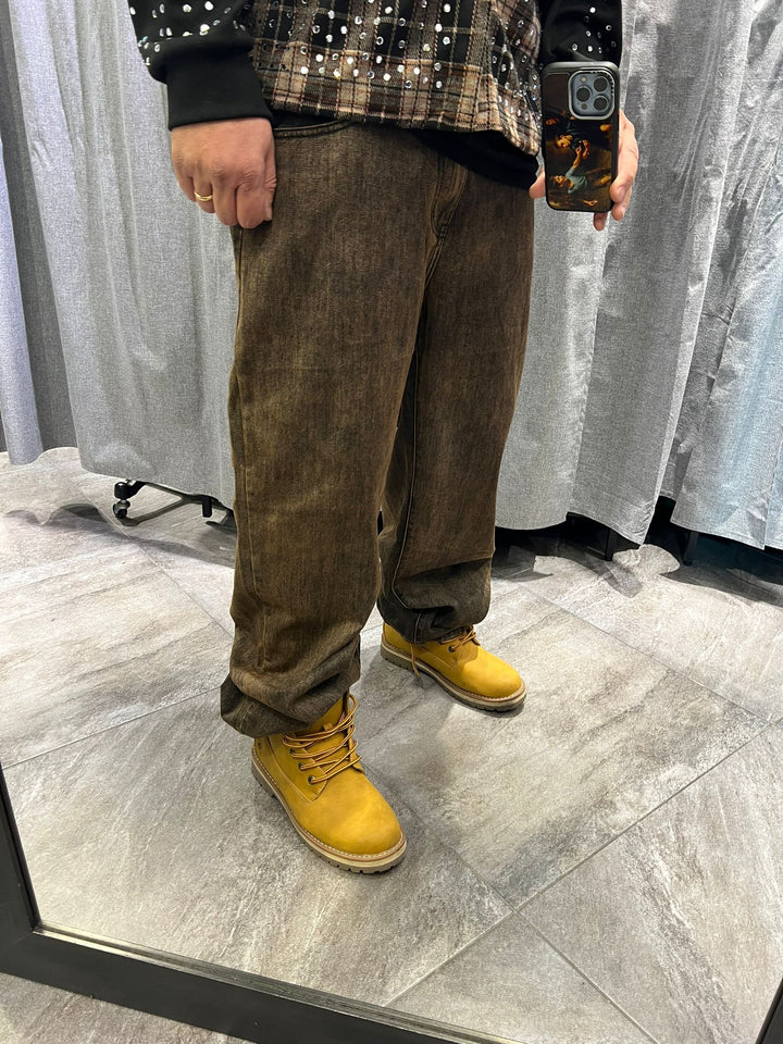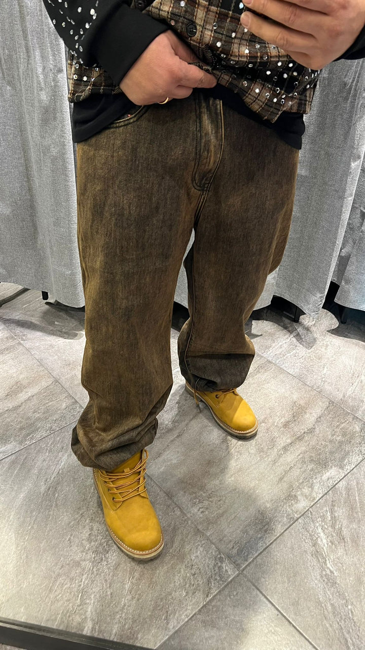JEANS BAGGY WASH SABBIATO MARRONE TESSUTO JEANS FISSO , VESTIBILITA' REGOLARE IN VITA