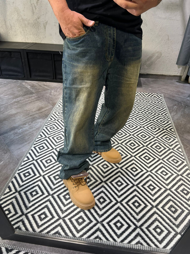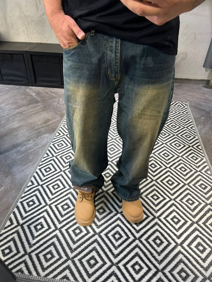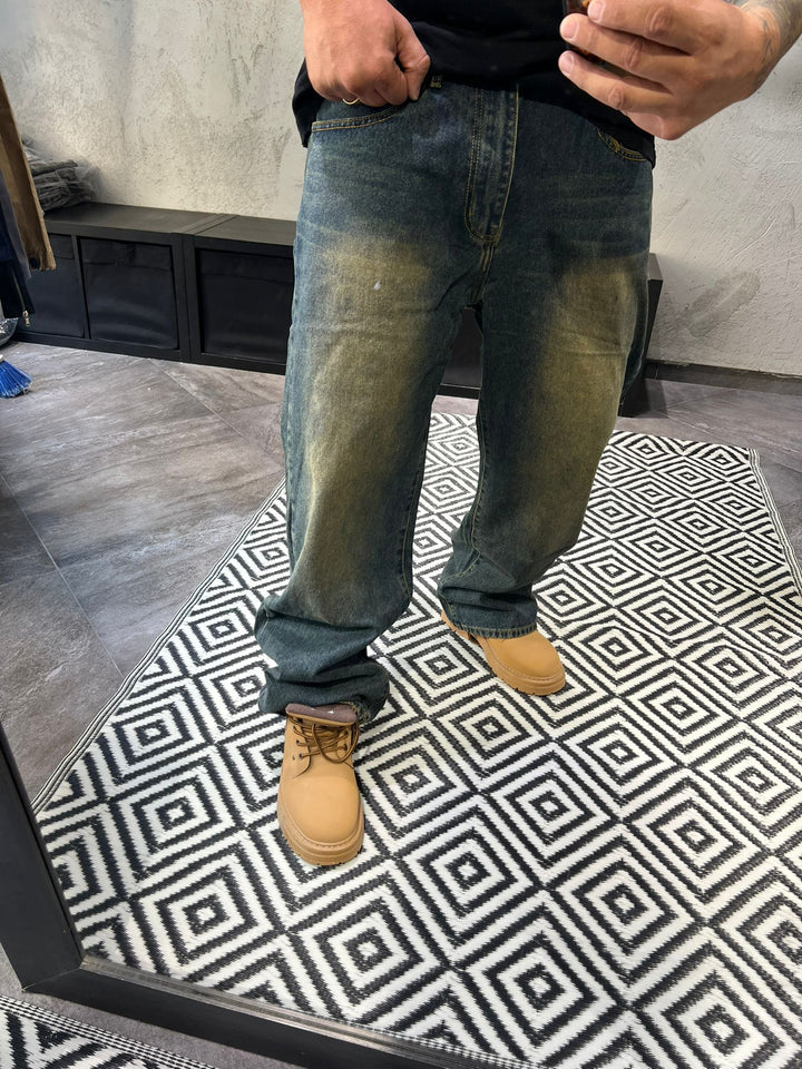 JEANS BAGGY WASH SABBIATO BASIC MOD ZARA VESTIBILITA' REGOLARE IN VITA TESSUTO JEANS SEMIELASTICO ,