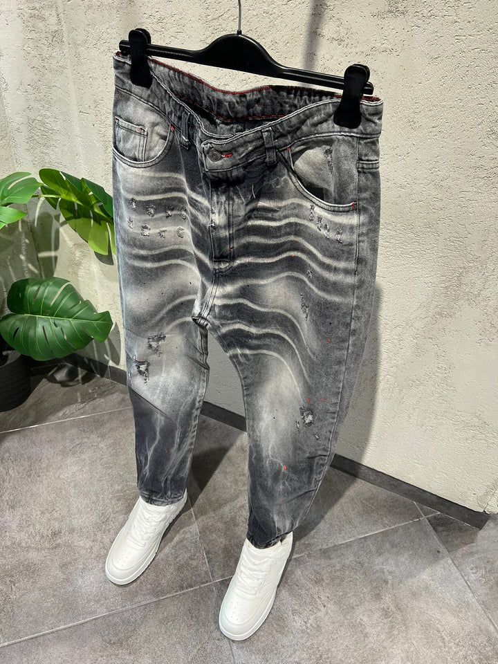 JEANS MOD DSQ LAVAGGIO MARMORIZZATO GRIGIO TESSUTO JEANS FISSO , VESTIBILITA' REGOLARE IN VITA