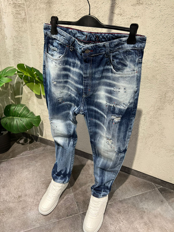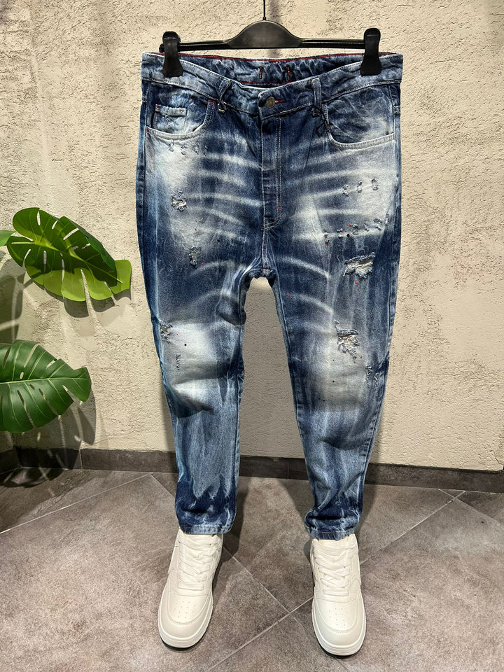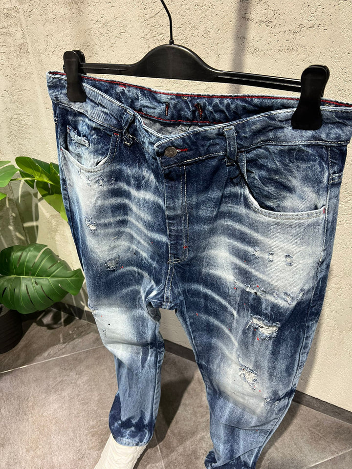 JAENS MOD DSQ TESSUTO JEANS LAVAGGIO MARMORIZZATO BLU CON ABBRIASIONI TESSUTO JEANS FISSO