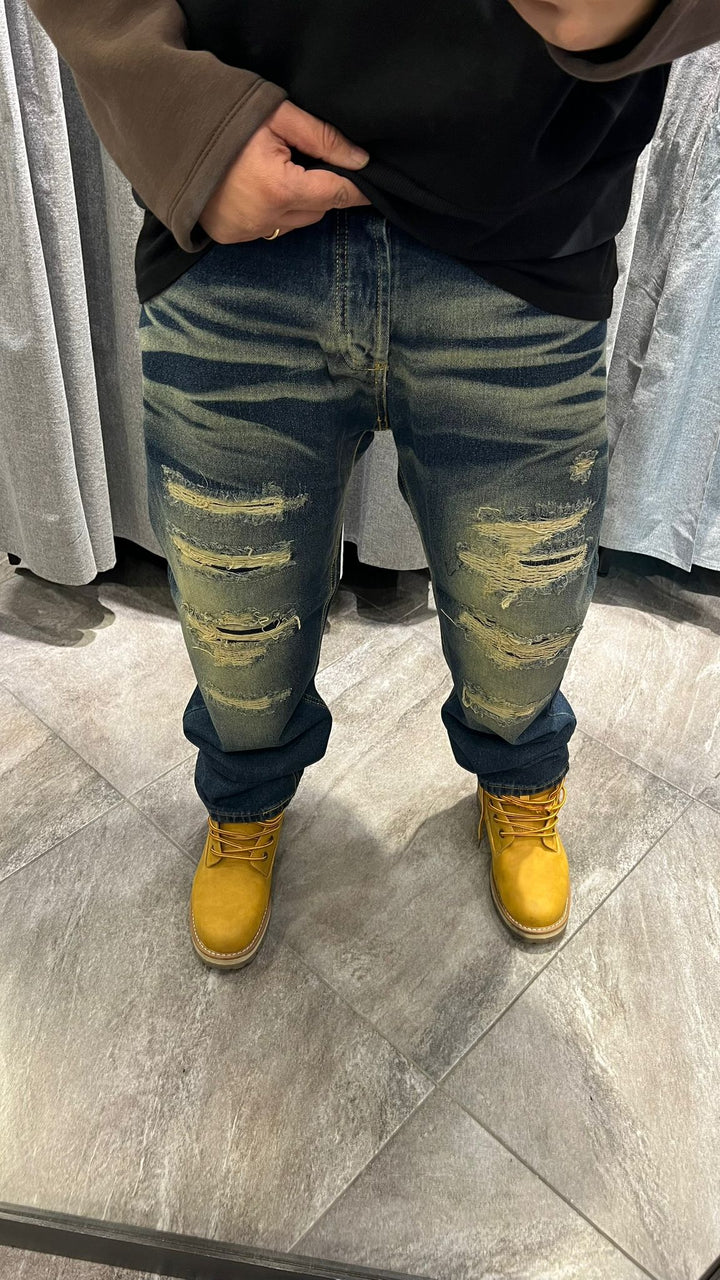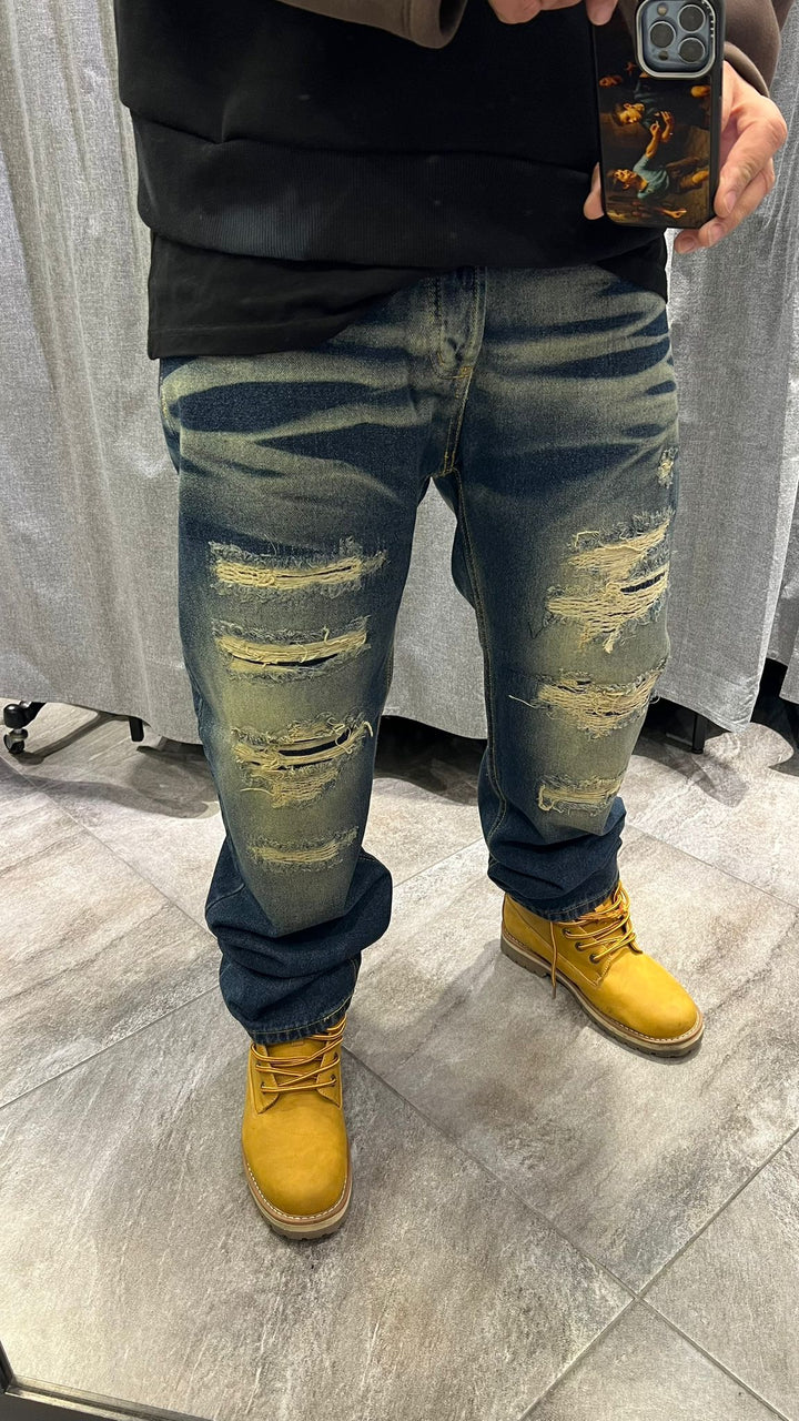 JEANS BAGGY DESTROYED WASH SABBIATO TESSUTO JEANS DOPPIO FISSO , VESTIBILITA' REGOLARE IN VITA