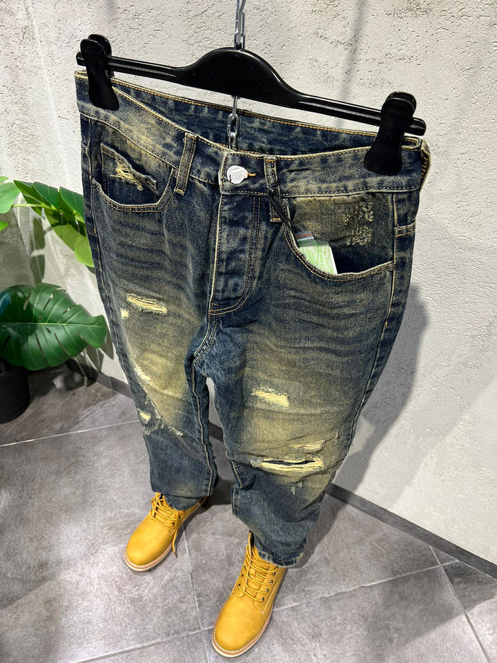JEANS BAGGY DESTROYED MOD ZARA VESTIBILITA' REGOLARE IN VITA , TESSUTO JEANS FISSO ,CON STRAPPI CON TOPPE LAVAGGIO SABBIATO