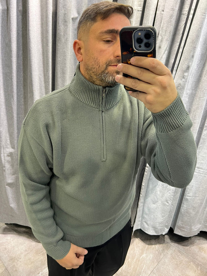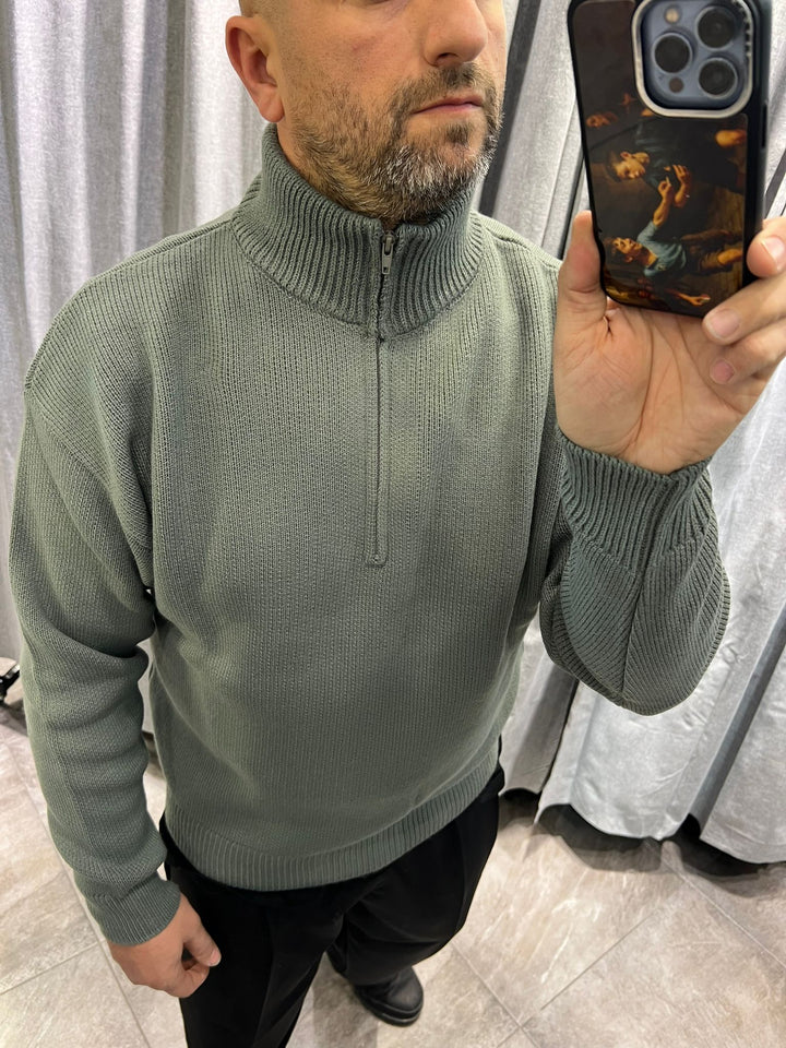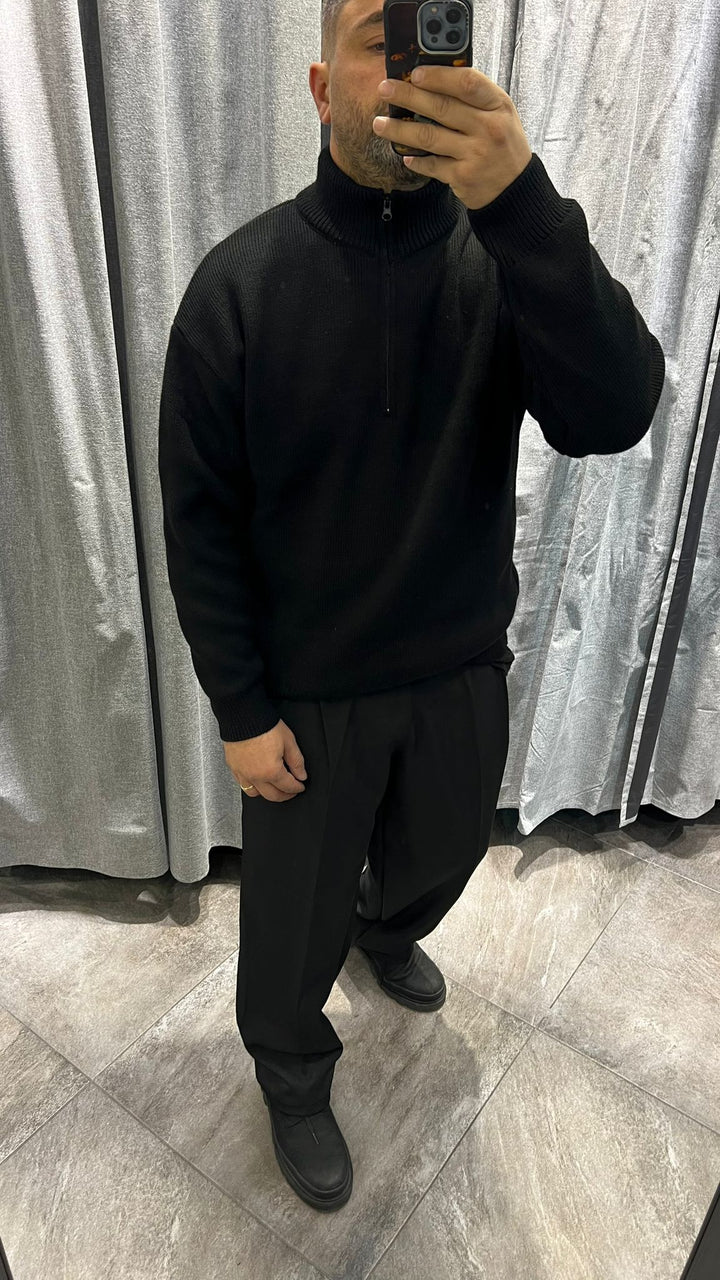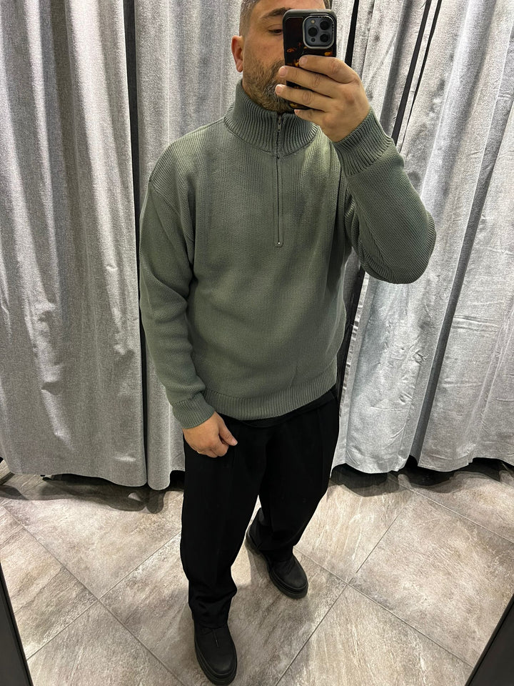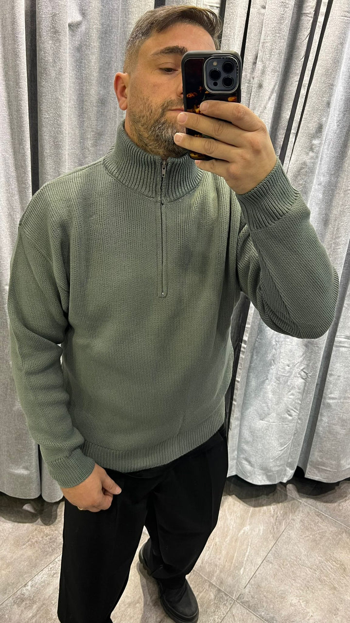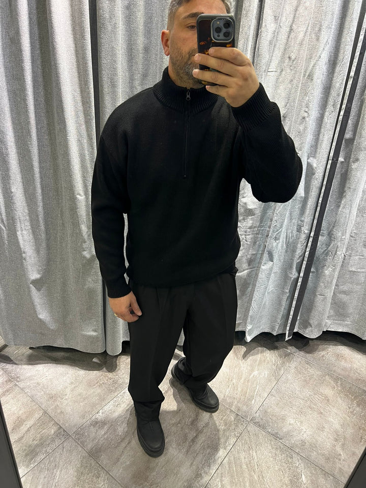 MAGLIONE ZIP MEZZO COLLO TESSUTO LANA , VESTIBILITA' CROPPED OVERSIZE
